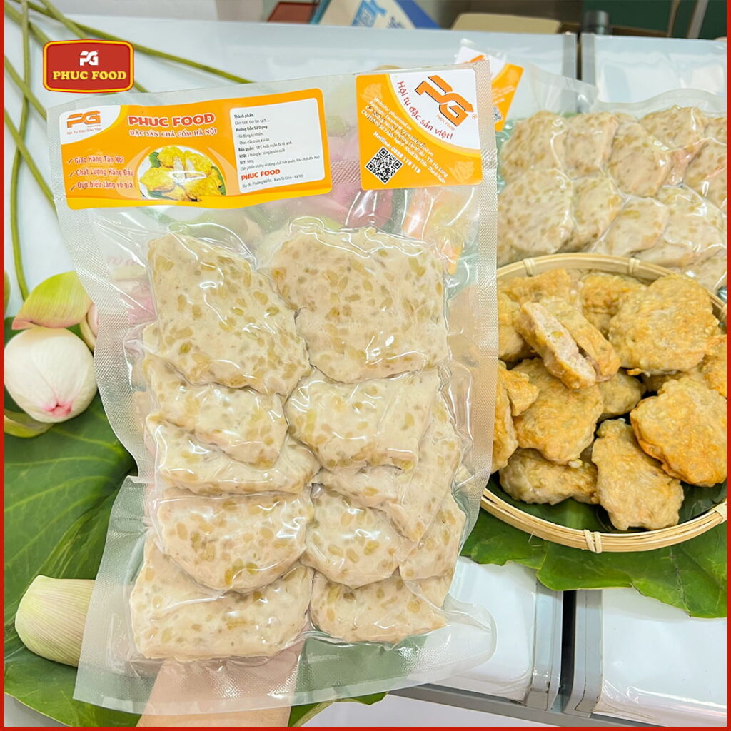 PhucFood cam kết mang đến miếng Chả Cốm Hà Nội, được chế biến từ cốm Làng Vòng chính gốc và thịt tươi sạch, không phụ gia.